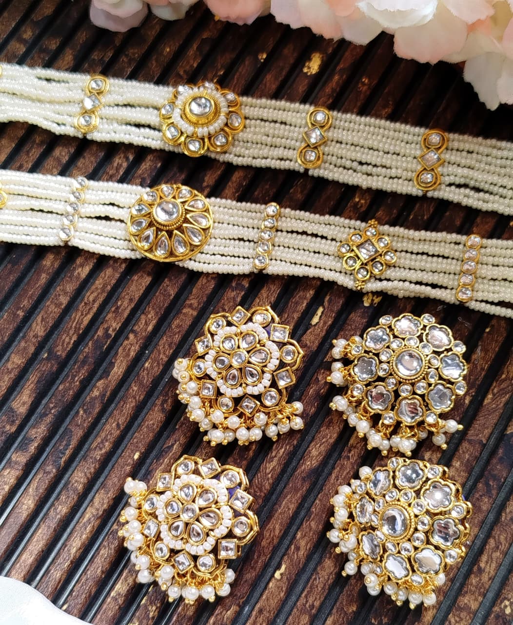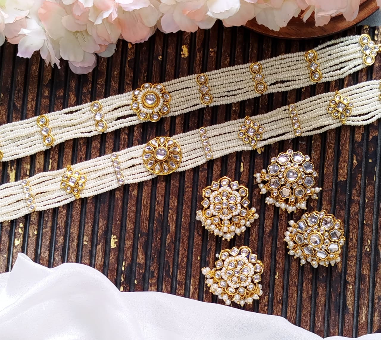 The Ivory Grace Pearl Choker Set is designed for women who prefer elegance without noise. Featuring finely layered pearl strands and a delicately crafted centerpiece, this choker sits gracefully on the neck, adding a refined glow to any outfit.